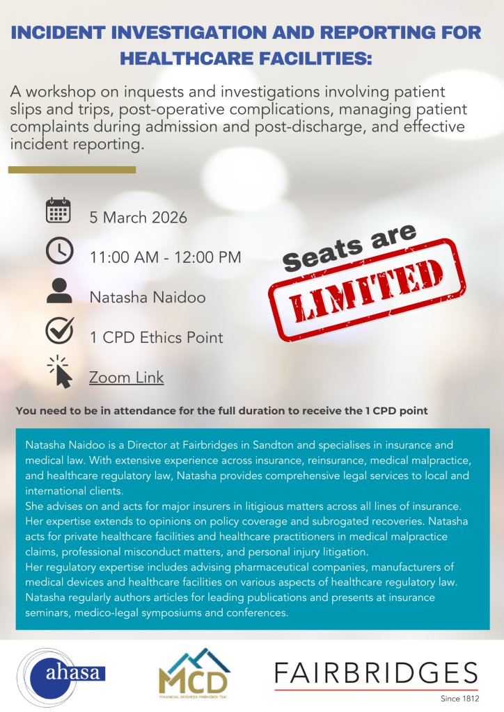 Join us for an essential CPD workshop covering inquests and investigations involving patient slips and trips, post-operative complications, managing patient complaints during admission as well as post-discharge and effective incident reporting.